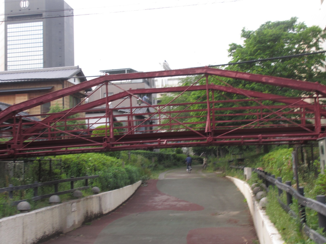 富岡八幡宮の東側にあります。国産第一号の鉄橋である弾正橋を、昭和4年に移設したもので、国の重要文化財です。今でも八幡橋という名前で現役として使われています。説明板がなければ通りすぎてしまうような気もしますが、年季のはいった橋はやはり目を引きます。