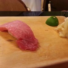 おまかせを食べ終わった後ウニ、トロ、マグロ、エビを追加♪