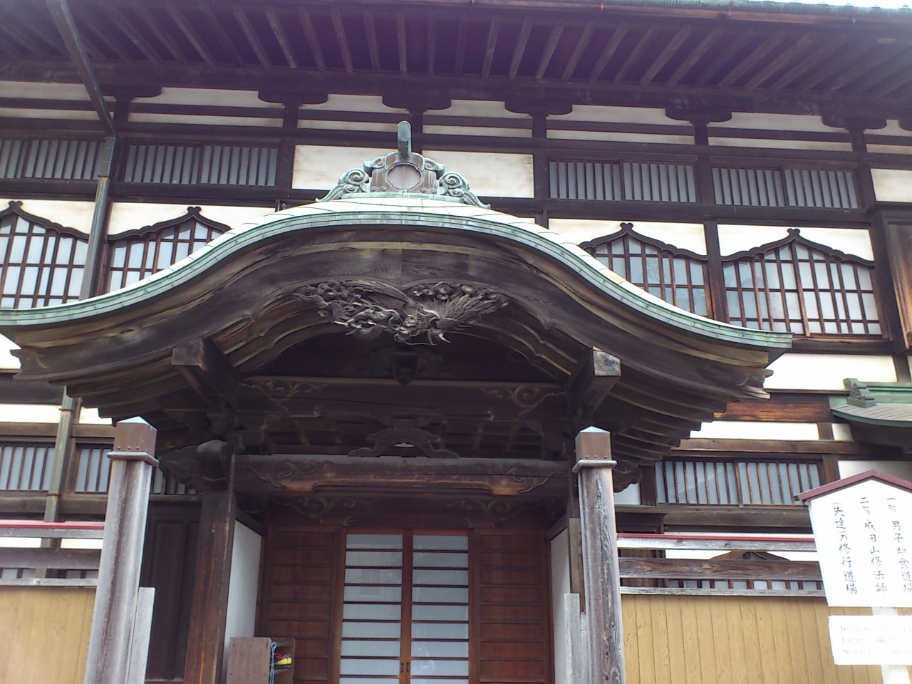 成田山の参詣がほぼ終わり、仁王門の階段でなく鐘楼の近くの石段を下りて行くと、左側に水行堂があり、その隣に宿坊のような建物が建っています。成田山へ籠って修行をすることを参籠修行と呼ぶそうで、水行や断食などの修行です。ここの建物に篭って断食修行をするようです。断食の前には健康診断があり、だいたいは3日間断食し、水以外は口にできないようです。