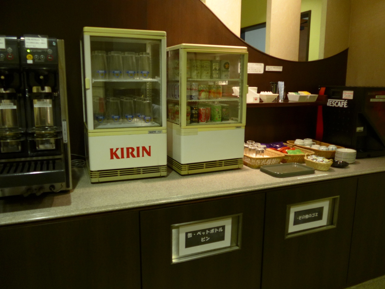 広さはそんなには広くありませんが飲み物はビールサーバーや各種缶でのソフトドリンクも揃っています。つまみには現在、四種類のお煎餅の小袋があります。