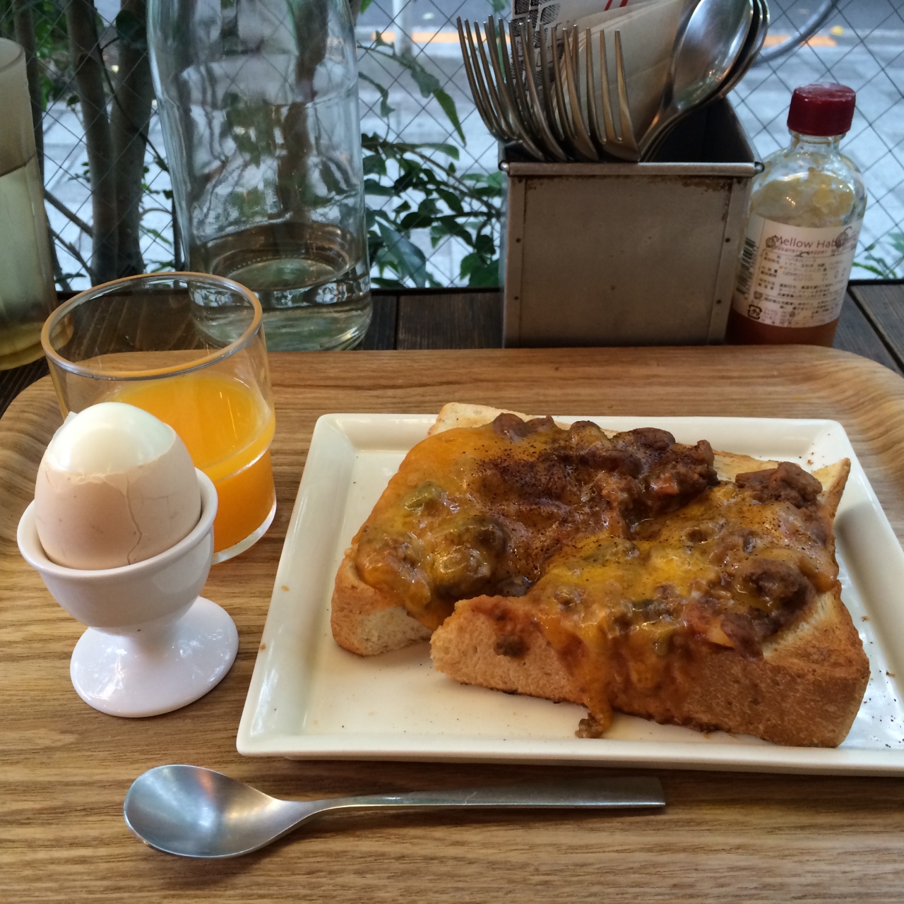 メインのトーストの他、ゆでたまご、オレンジジュース、コーヒーが付きます。