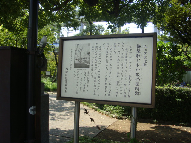歴史のある公園で、江戸時代に売薬所の敷地に梅の木数百本と花木を植え、東海道の休み茶屋を作ったことが始まりです。また明治天皇に気に入られ、9度も通ったと記録されているようです。現在の梅の木は90本程度になり、敷地も小さくなりました。また京浜急行の立体工事で狭くなり、さらに道路の拡張工事もありますので、今後の公園の存亡が心配です。