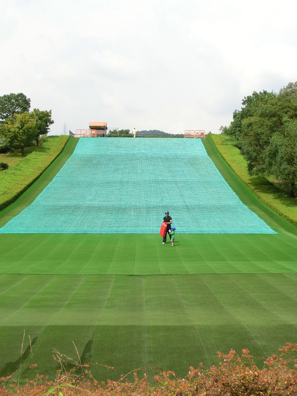 この公園の目玉は、(私の勝手な思い込みですが)、自然の傾斜を利用したビッグ滑り台です。