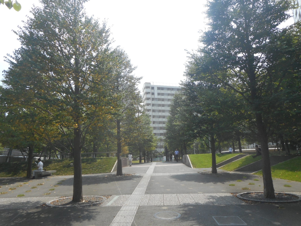 JR品川駅港南口を出て右側に進み品川インターシティー方面に進むとある公園です。
