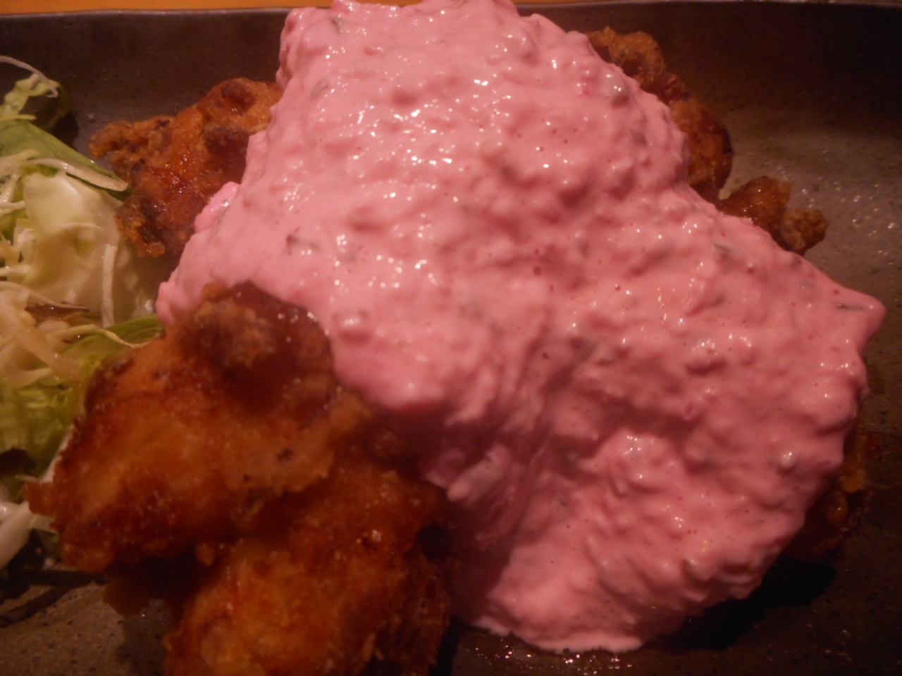 チキン南蛮には見た目もきれいなピンクのタルタルソースがかかっています。