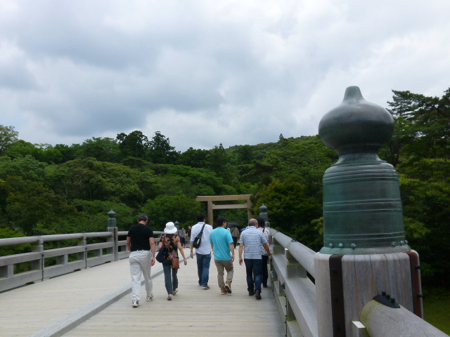 伊勢神宮の参道口を流れる五十鈴川に架かる宇治橋は日本百名橋に選ばれる木造の美しい橋です。聖俗界を分ける境界にあたります。また宇治橋の欄干に取り付けられた「御裳濯川御橋」の刻印がある擬宝珠(ぎぼうしゅ)は装飾が葱坊主(ねぎぼうず)の形で数回の架け替えをしていて現在の橋が架けかえられてから約半世紀ほどになります。