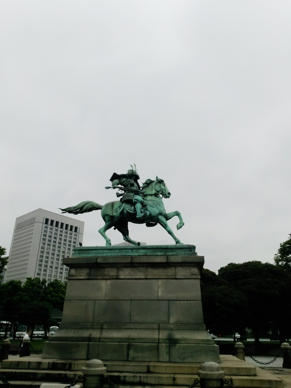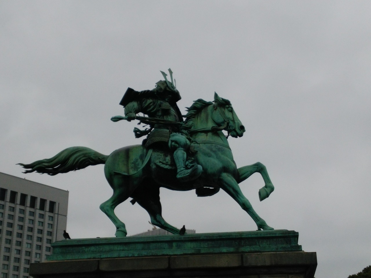 二重橋を正面に見据える外苑の一角(観光バスの駐車場脇)に楠木正成公の銅像があります。この銅像は、楠木正成公が1333年隠岐の島から還幸途次の後醍醐帝を兵庫の道筋で迎えした時の勇姿を象ったものとのことです。
