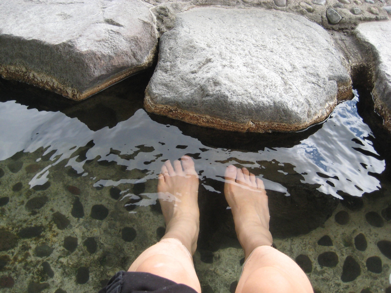 電車の待ち時間に利用させてもらった。湯加減はちょうどよかった。屋根もあるので日が直接当たることはなく過ごしやすかった。10分くらいだったが、体がポカポカしてきて気持ちよかった。駅中の観光案内所で、足湯のための特製タオルが200円で売られていた。