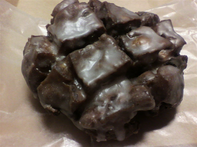 カットしてみると、中はしっとり。レーズンが感じられるけどアップル感は少なめ。シナモン、コリアンダーも使っていて、スパイシーです。そしてオイリーです。1つイッキになんてとても食べれない激甘ドーナツでした!