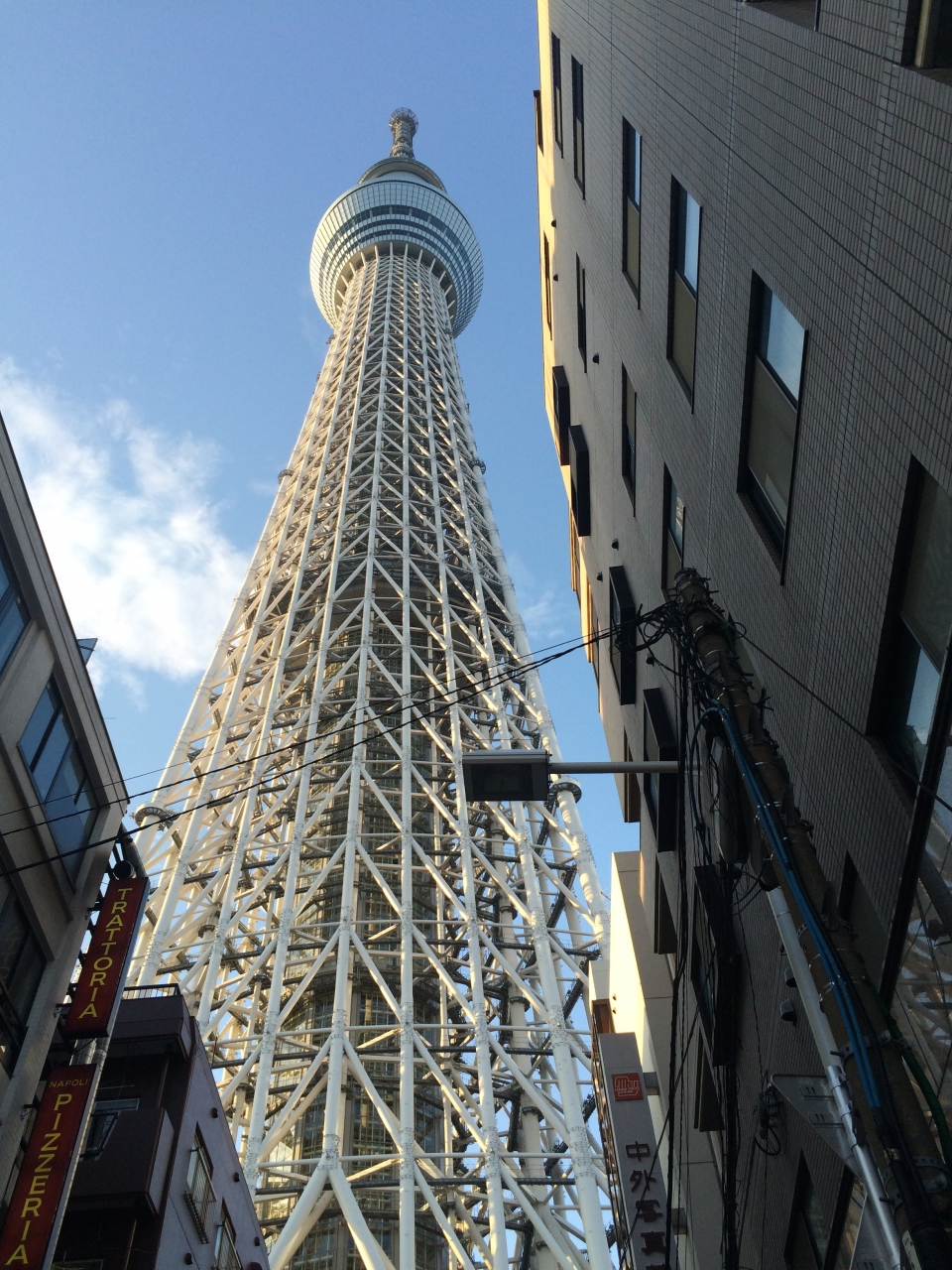 東京のあたらしいランドマーク、東京スカイツリーへ行きました。私は高所恐怖症のため、外から眺めました。。。とにかく見上げてその大きさにびっくりしました。とっても高いです。周囲にはお土産を買うところなどのお店が充実しています。