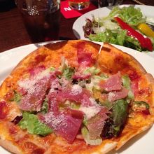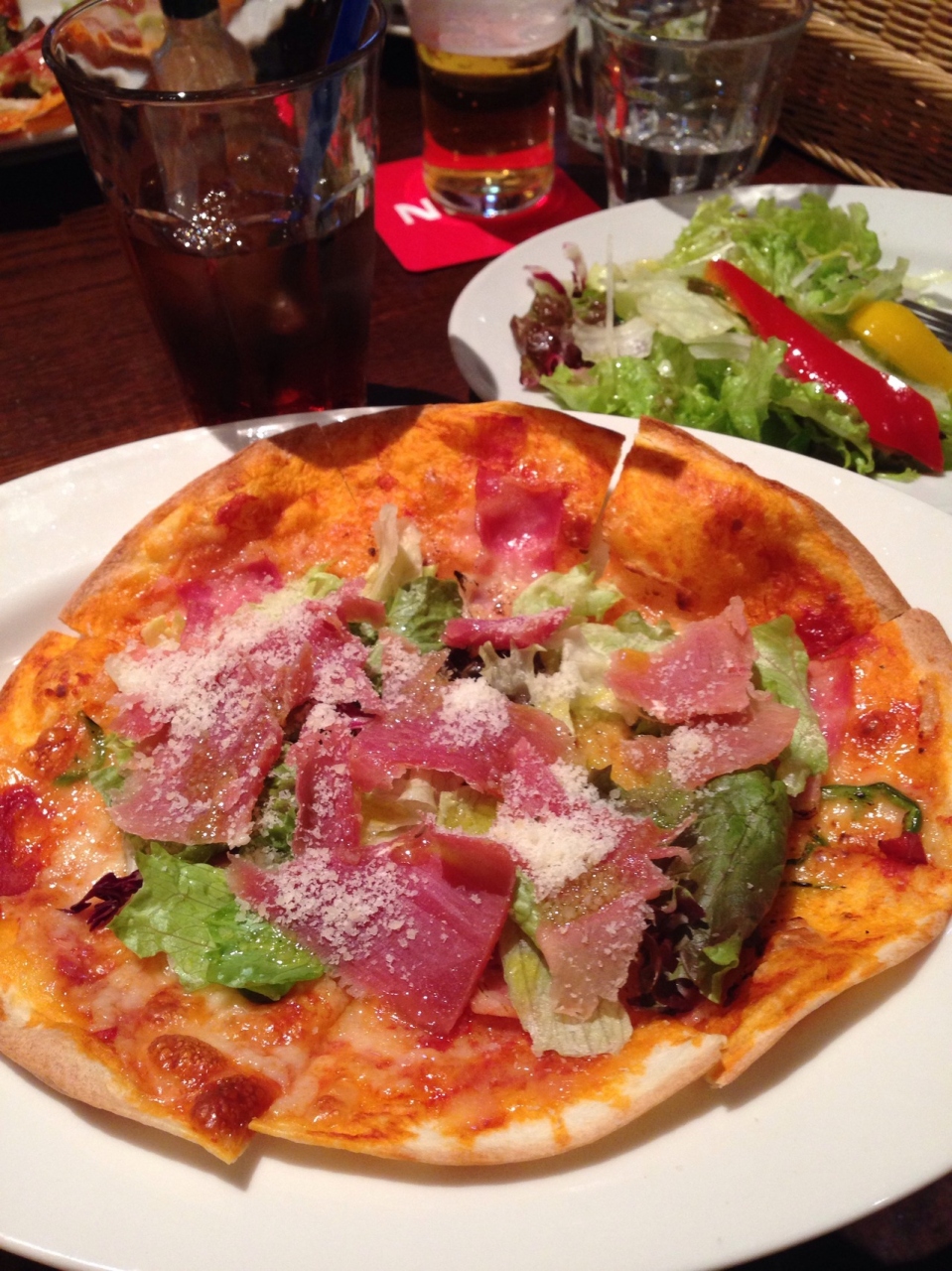ランチセットを頼みましたが、ボリュームたっぷりのサラダとピザで、お腹がいっぱいになりました。アサヒとキリンが組んだお店ということで、ビールを勧められましたが、ワインを頼んだ母。美味しかったようです。他のテーブルの方がチップスかオニオンリングか頼んでいて、とてもすごいボリュームで、今度は挑戦してみたいです。
