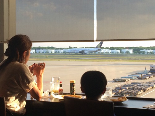 店の奥には大きな窓ガラスがあって、飛行機の離陸などが眺められます。子供は喜びそう。