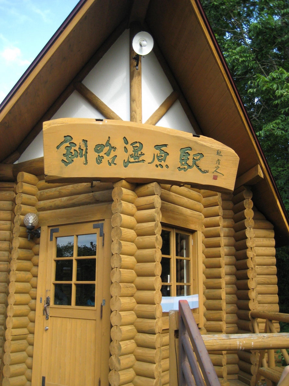 駅の待合所はログハウスで、中には椅子と電車の時刻表、湿原の写真があった。照明がついていなくて少々薄暗かった。無人駅であった。トイレや店はないので、利用したい場合は細岡ラウンジまで行かないといけなかった(駅から徒歩で5分)。
