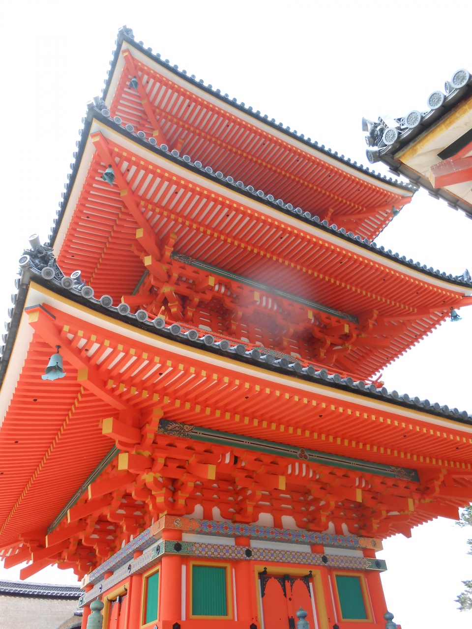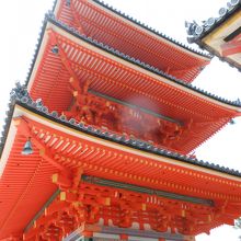 清水寺の境内にある三重塔です。平安時代初期に創建され、1632年に再建されたとのことで、現在の塔は古様式に則って1987年に解体修理したものです。この三重塔は、日本最大級の高さ約31メートルの塔のようで、三重塔の割には大きい塔です。