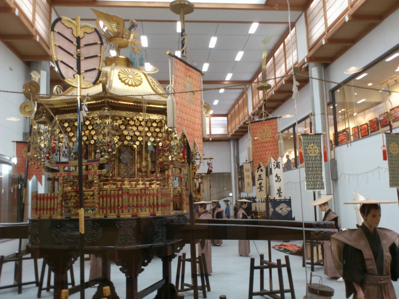 桜山八幡宮の参詣のついでに寄りました。巫女さんが高山の屋台について展示されている屋台を見ながら説明してくれます。とても丁寧な説明をしてくれるので、高山祭に関して良くわかります。展示会場は屋台の周りの通路が徐々に登っていく形になっているので、最後は上から屋台を眺めるようになっているので、全景を見ることができます。