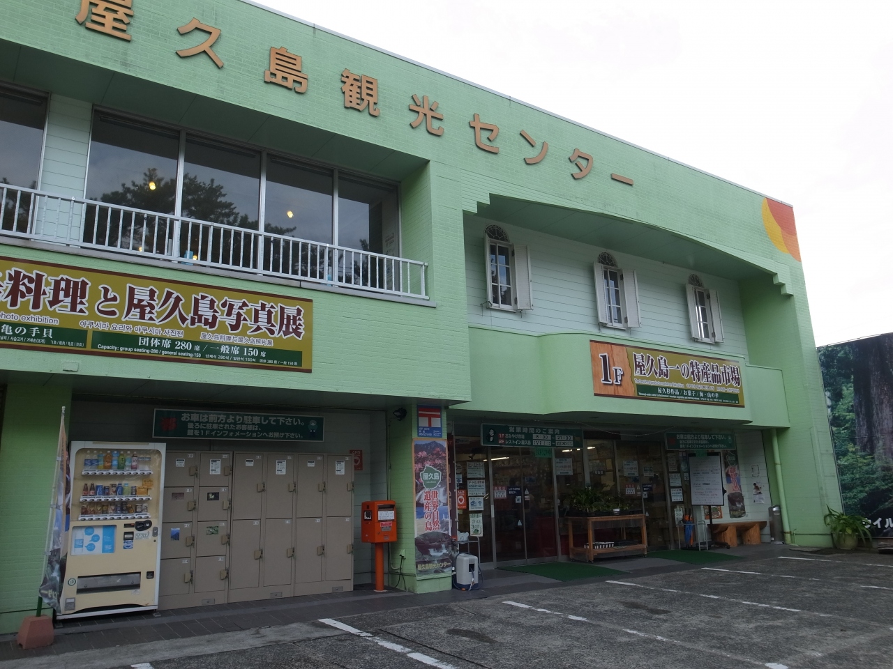 宮之浦港から道沿いに徒歩5分ぐらい歩いたところにあるお土産物屋さん。屋久島内には数多くある物産センターですが、品ぞろえはおそらくこちらが最大級なのではないでしょうか。屋久杉を惜しげもなく使った各種民芸品が数多くあり、見ているだけでも楽しいです。