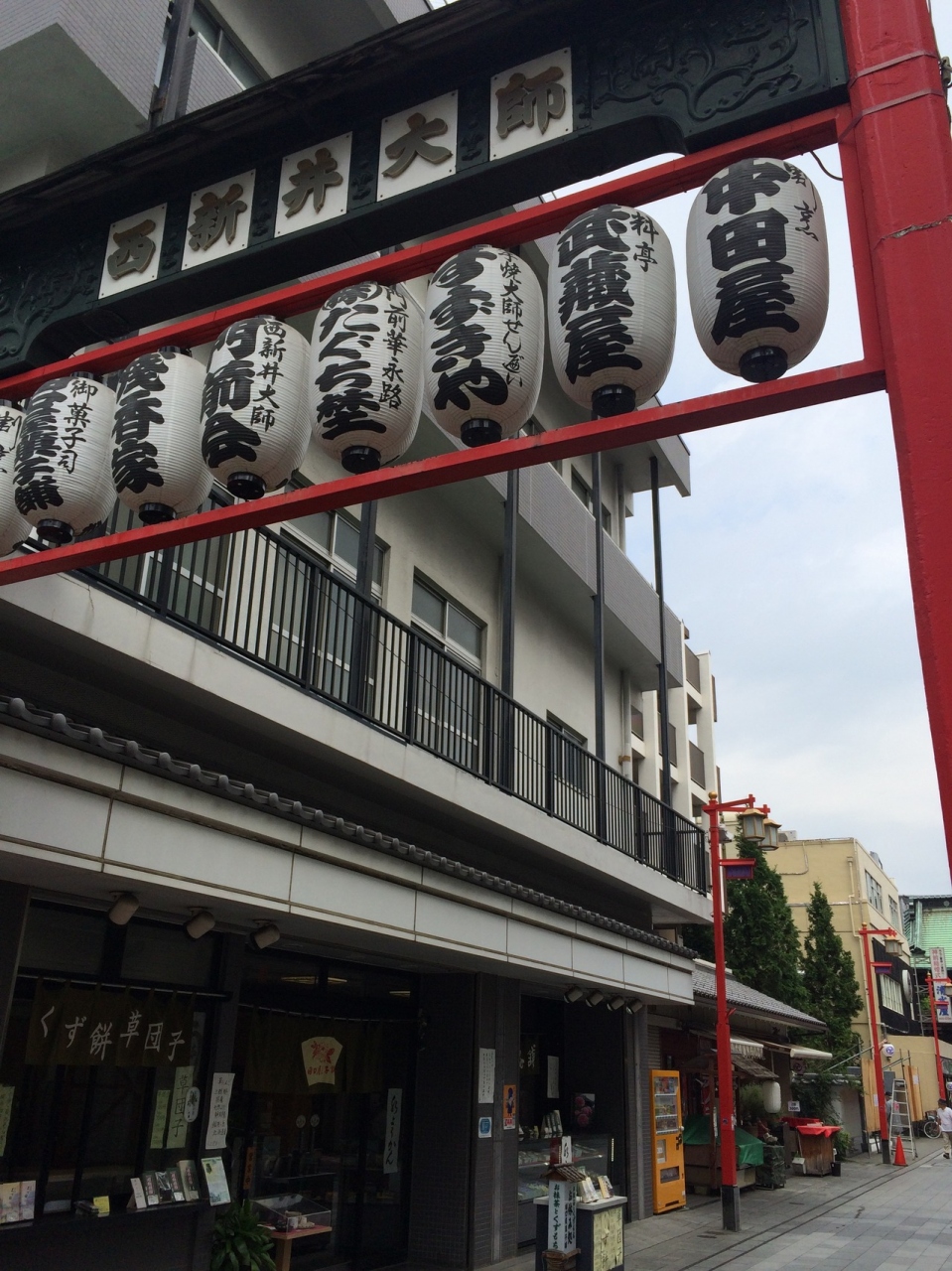 大師前付近から西新井大師まで続く商店街で最初は普通の商店街のようで風情がなかったですが角を右に曲がると山門が見え、だんご屋やせんべい屋等が並び寺の商店街ぽくなってきました。だんご等前では参拝客に威勢の良い掛け声が響いていました。