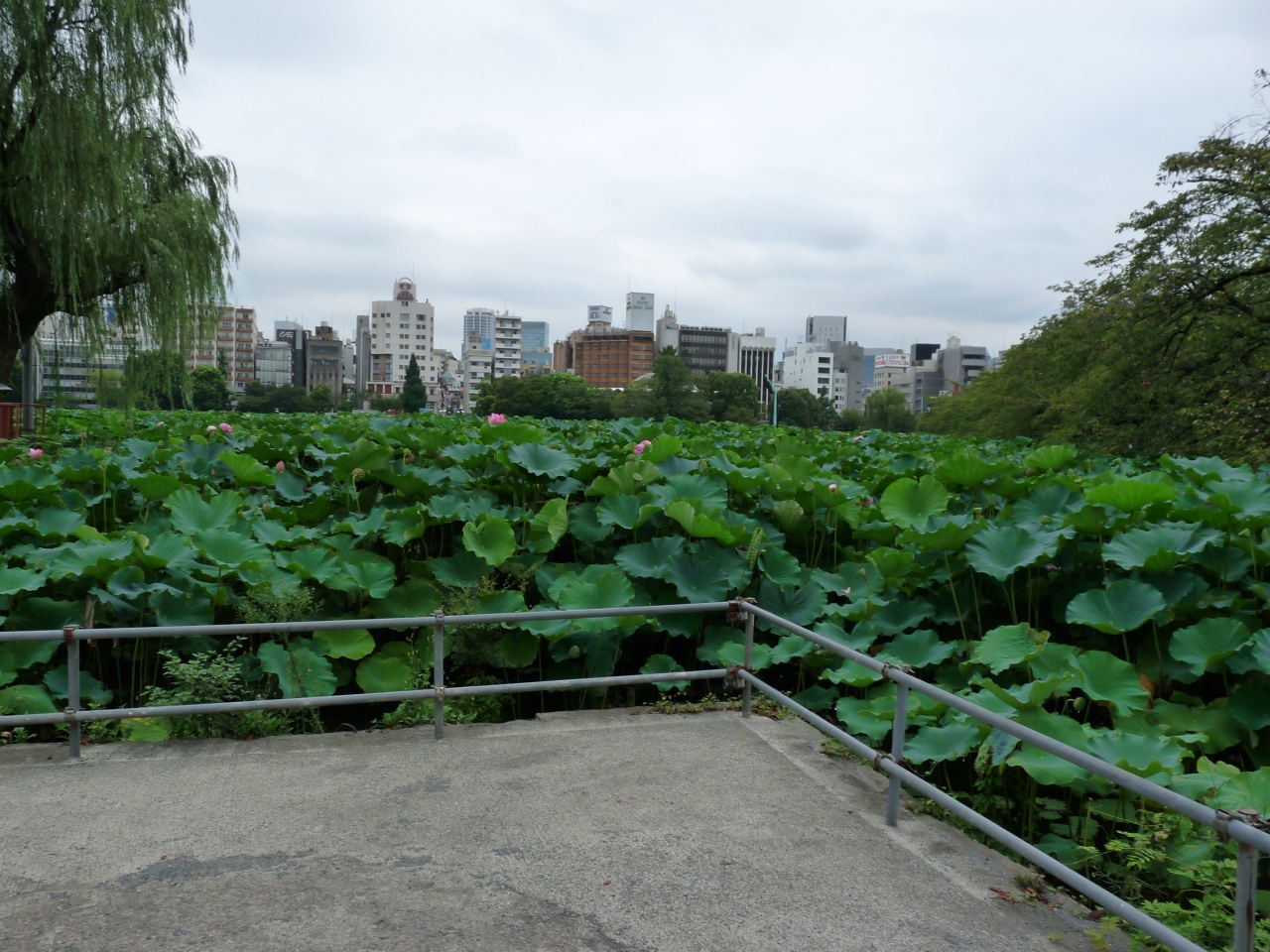三菱財閥とNHK大河ドラマで知ることとなった岩崎彌太郎について史料館などを訪れる際の経由地となったこの池だったのですが,普段目にすることのない一面全てを埋め尽くす蓮の葉と花には圧巻でした。園路ではジョギングする人や蓮の花を写真撮影する方など多くの人が癒されていました。