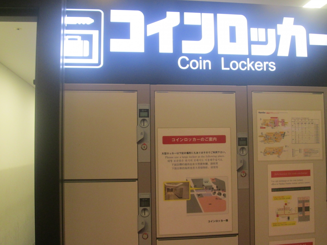 難波駅でコインロッカーを探しましたが、幸いなことに改札の周辺などで簡単に見つけることができました。