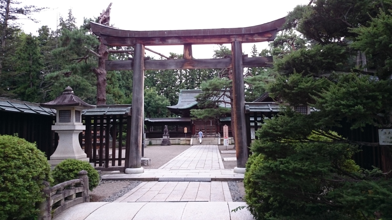 鳥居は朱塗りされておらず、割れたり、色にムラがあったり、風雪に耐えてきた様子がしのばれます。上に反っているところに特徴があり、武将らしくてかっこいいです。