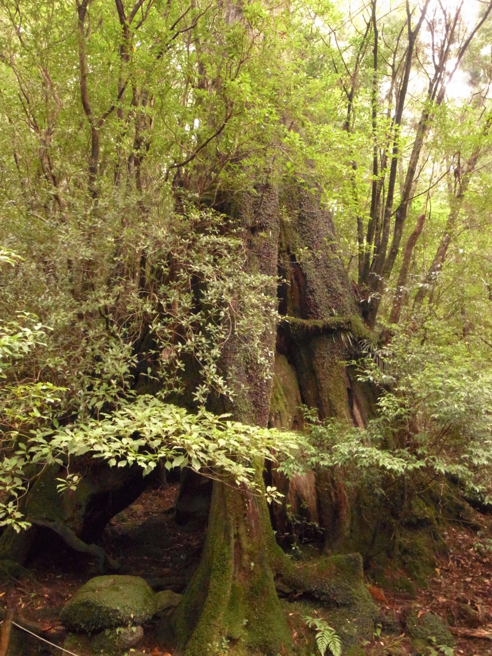 その名の通り初代の杉が倒れた後に子供の杉がその幹を土台に芽をだし、孫がさらにそれを礎として生命を紡いできた。それほどの巨木でもなく、こういったかたちの杉は珍しくはないですが、屋久島での生命循環、エコロジーのありかたについて身をもって知らしめてくれる偉大な形の一つ。