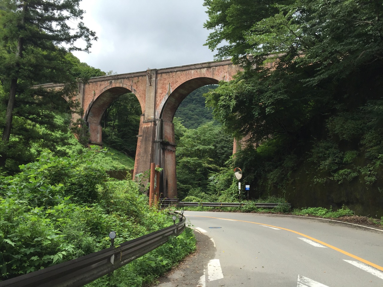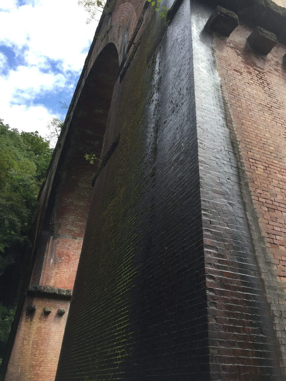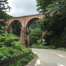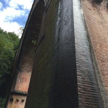 近くから見ると、本当に大きな壮大なレンガの橋です。そのレンガ積みの技術に驚かせられます。橋の左側に、橋の上に上がる遊歩道が整備されています。橋の上から見ると、その高さに、また驚かせられます。橋の上はアプトの道の一部で、両側にはトンネルが続いていました。