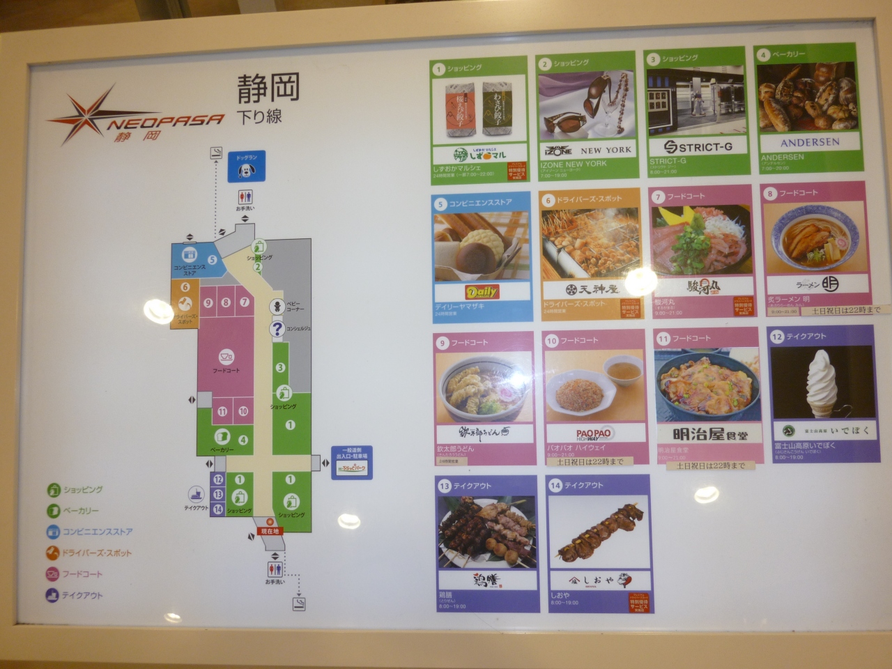 たいていは、愛知に帰るために浜松SAを利用したのですが、今回は初めて静岡SAを利用してみました。兎に角、判りにくい構造です。特に、新東名の名古屋方面に戻るの戸惑いました。逆走になることは無いとは思いますが、新しいSAがこんなことでは、これから心配です。