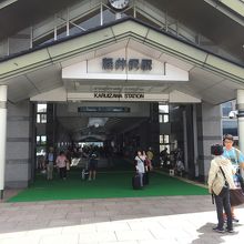 駅全体は明るく開放的で「おぎのや」や、その他のお土産も売っています。南口を出れば、すぐにアウトレットです。