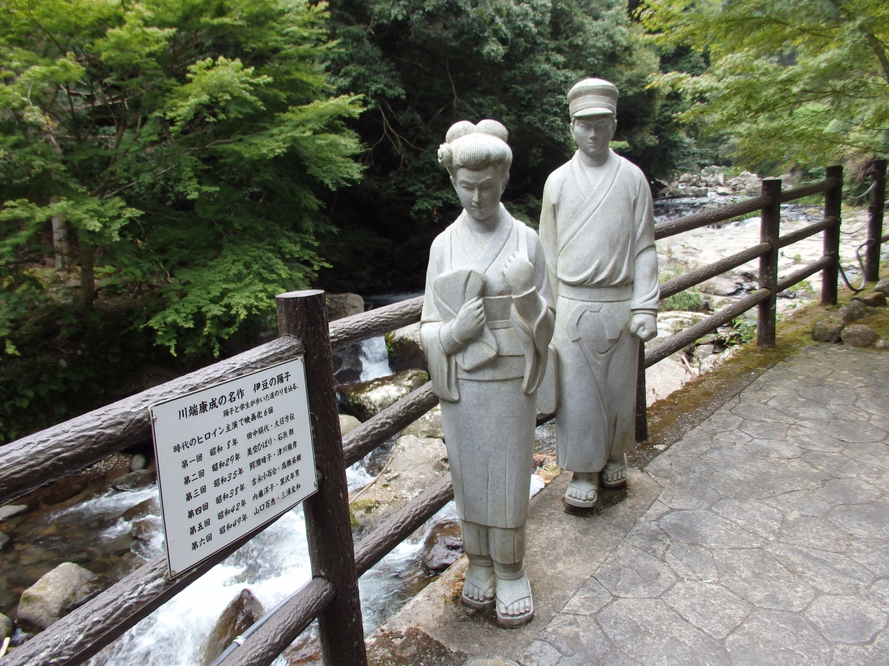 かに滝付近には、アイスクリーム等を売っている茶屋や、公衆トイレなどもあり、ゆっくりできます。また、「伊豆の踊子」の話にあうような像もあり、撮影スポットも盛りだくさんでした。