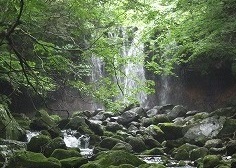 那須岳の1つ白笹山から流れる沢名川にある小さな滝です。高さは10m、幅が5mで、バランスも良くて美しい滝です。道路沿いの駐車場から滝まで30m降りるだけで、水しぶきがあふれて、ひんやりして、とても気持ちが良いです。暑い真夏でもここに来れば一瞬にして涼しい、自然のクーラーです。