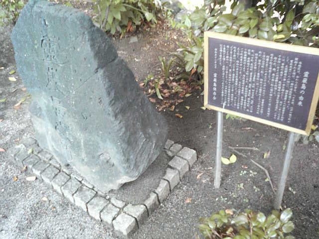 東京メトロ・茅場町駅から歩いて5分ほど、越前堀児童公園の端の植え込み内に古ぼけた石碑と立て札があります。