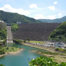 国道158線を九頭竜ダムに向かって下流の方から登っていきました。今まで見たダムとは違った変わったダムで、ごつごつした岩でできていました。土と岩を盛り上げて作ったロックフィルダムという形式だそうです。ダムの上には無料の展示室があったので、ダムの詳しい歴史を知ることができました。