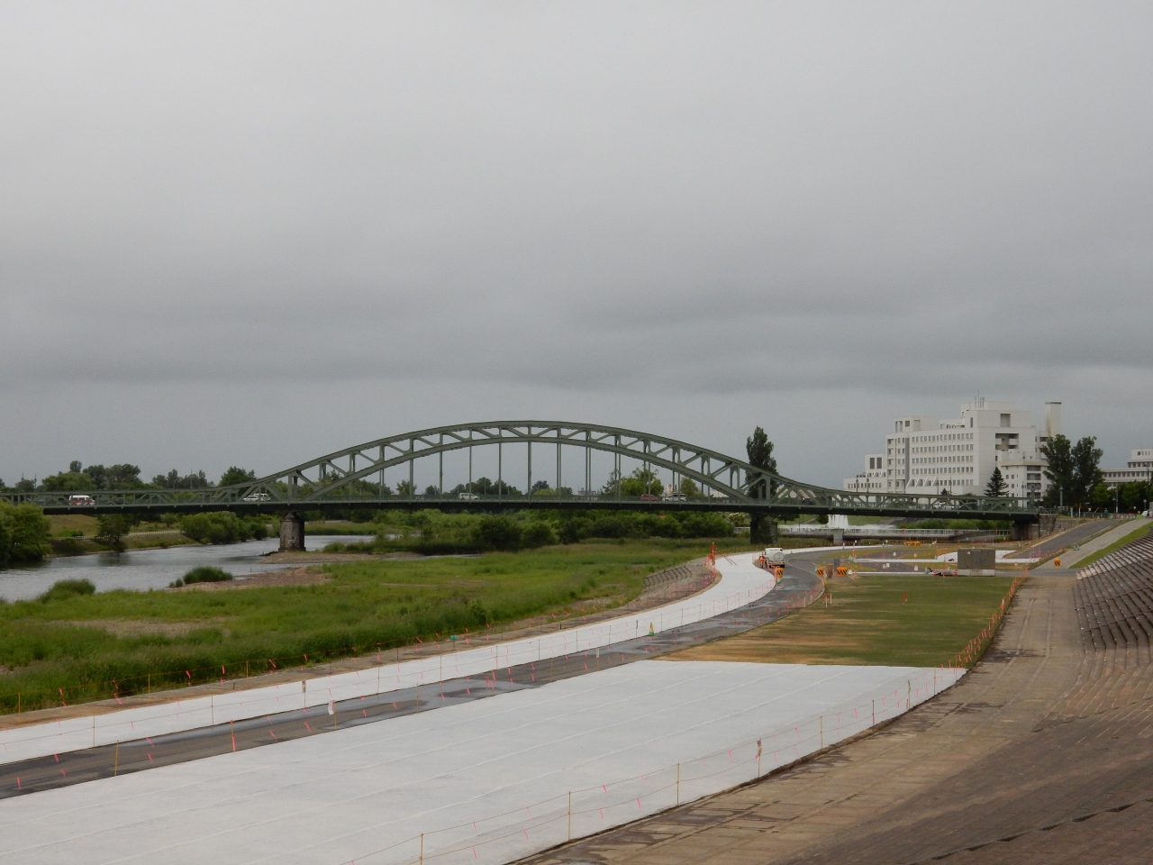 国道40号線の橋なので渡るのは簡単ですが、橋の写真を撮る場所を探すのが難しかったです。常盤公園のあたりに車を停めて、堤防を上がって写真は撮りました。