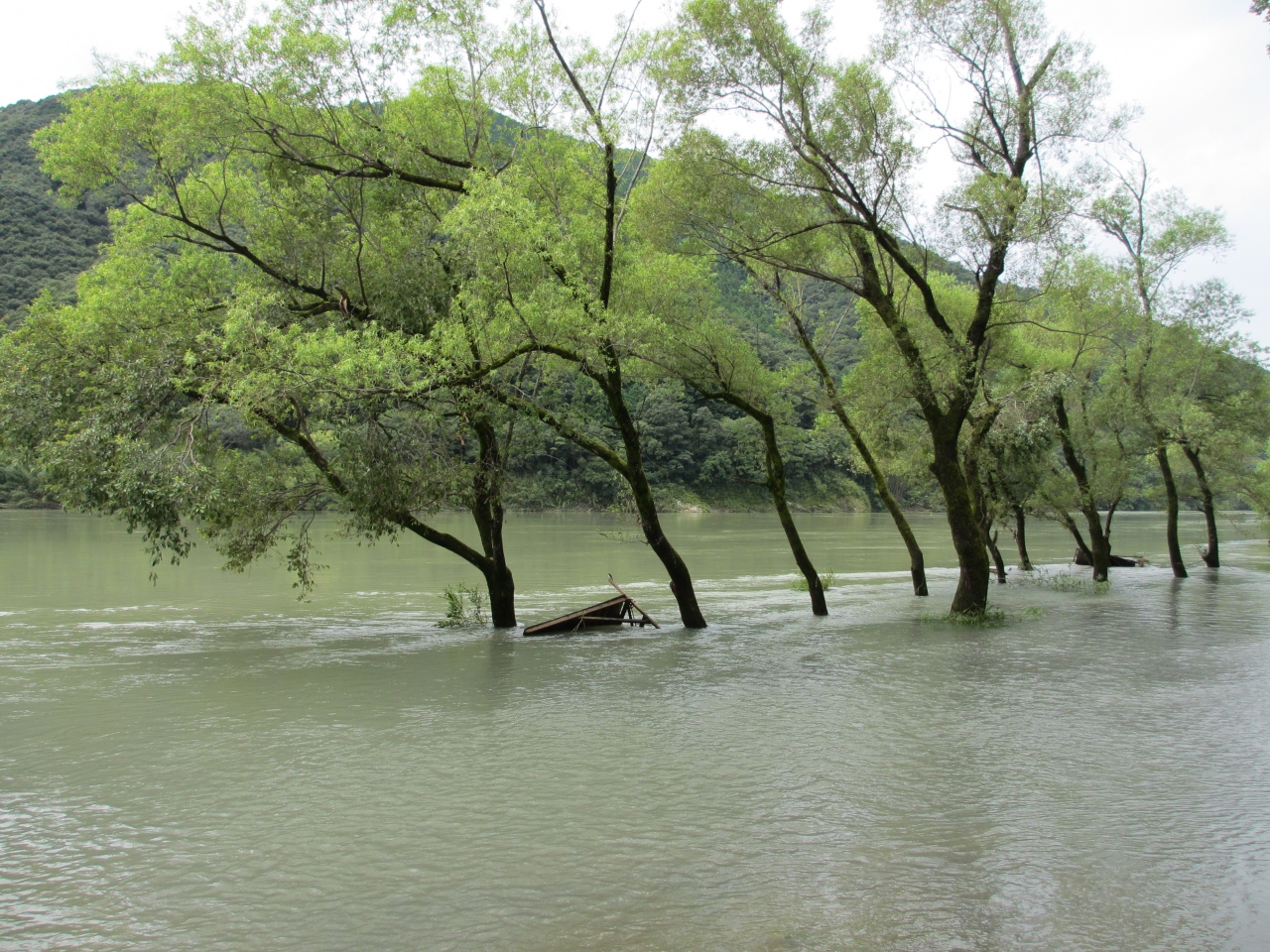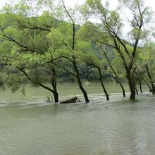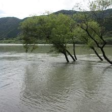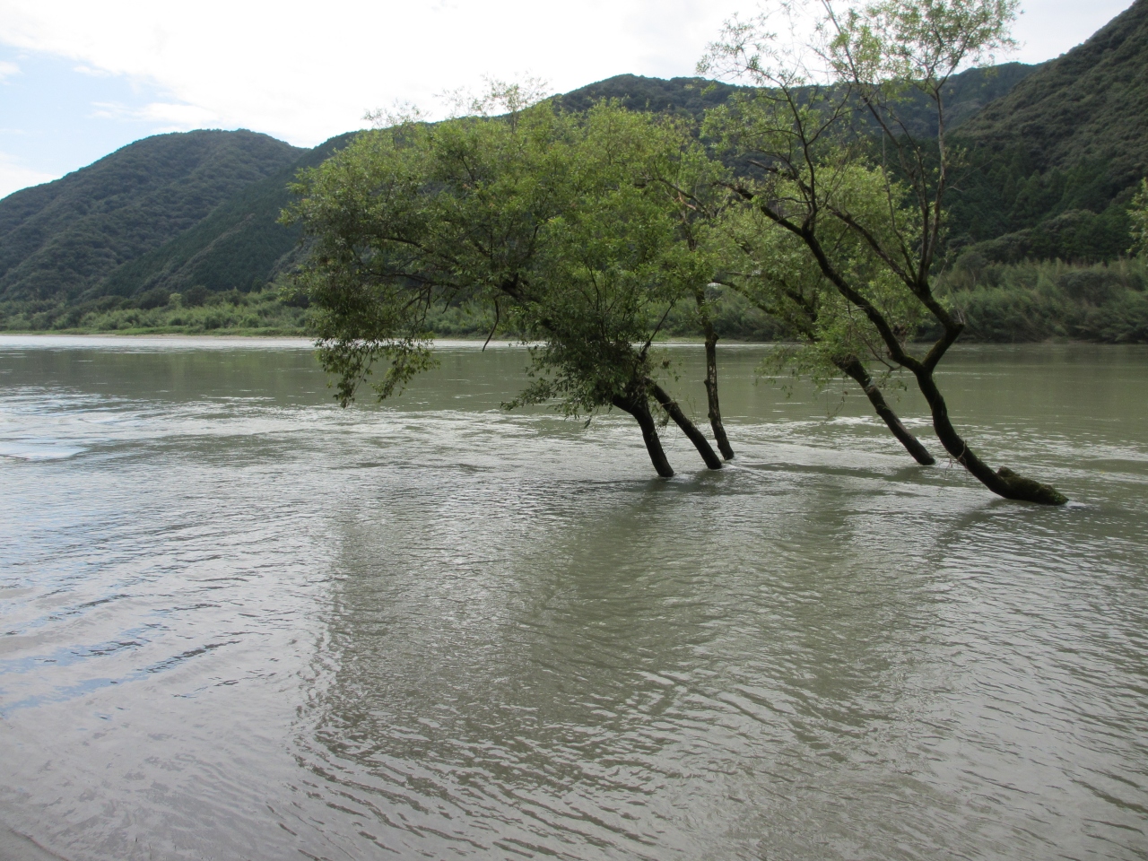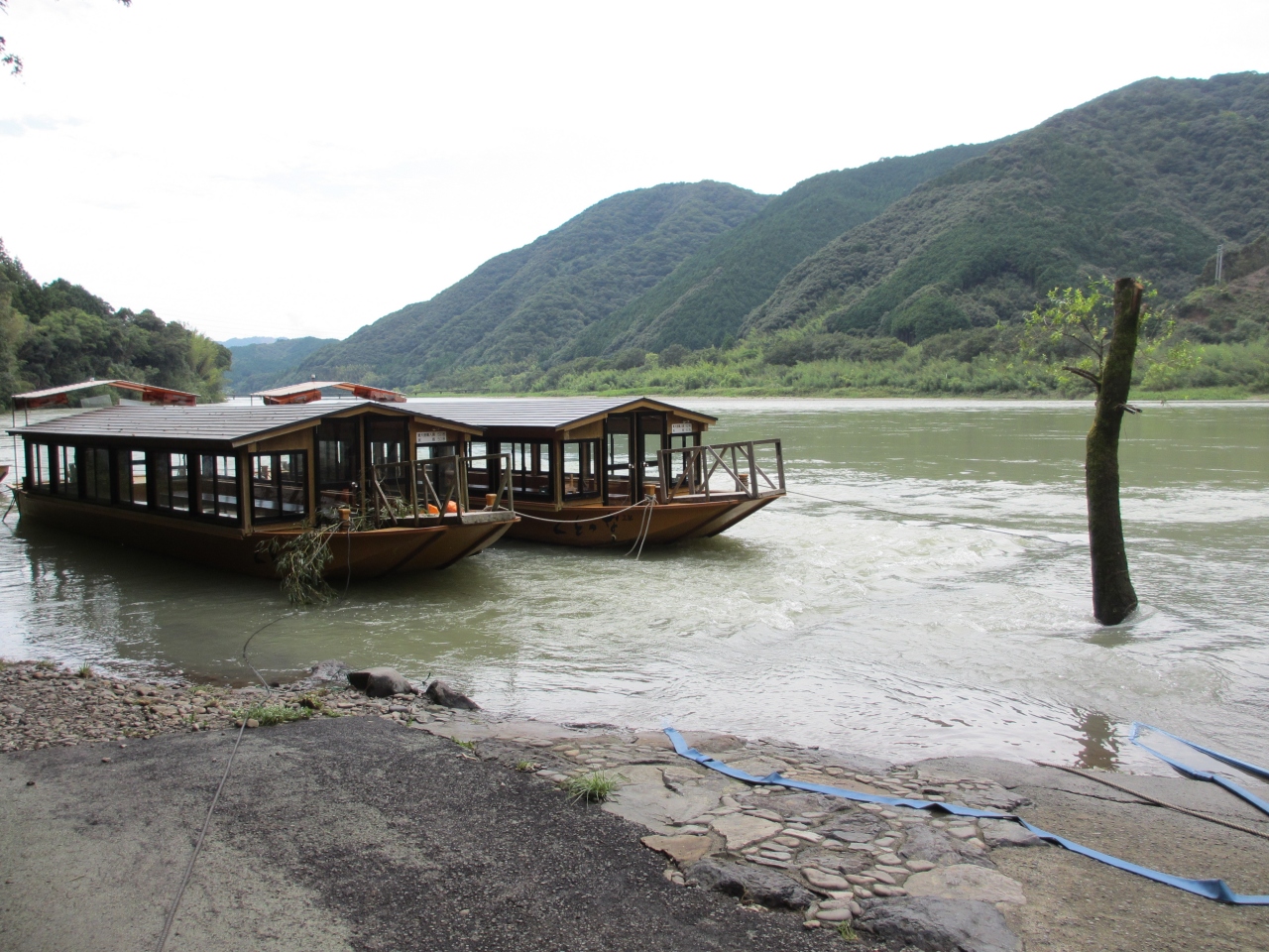 日本最後の清流と言われる四万十川には約160種ほどの生物が生育しています。日頃は川の水も澄み、穏やかに流れています。しかし上流にダムを作らない方針のため、一度大雨が降ると水は濁り、水量は増加し、暴れ川になってしまいます。ひどい時は水かさが日頃よりも1m以上高くなり大きな被害を与えることもあるそうです。訪れた日は前日に多量の雨が降ったため、暴れ川状態になっていました。水量も増加し、水もにごり、河原も全く見えませんでした。お蔭で川下りもできませんでした。