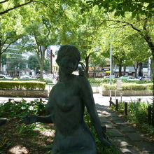 名古屋城を見学し、ここ「久屋大通公園」を散策しています。公園の幅は広く長~い公園ですね。いこいの広場やロサンゼルス公園などの名前を付けた公園や広場などがあります。また噴水もありテレビ塔付近には小川も流れ、緑あふれる自然を楽しむ事ができます。さぁーオアシス21まで歩いていきます。気分爽快です。