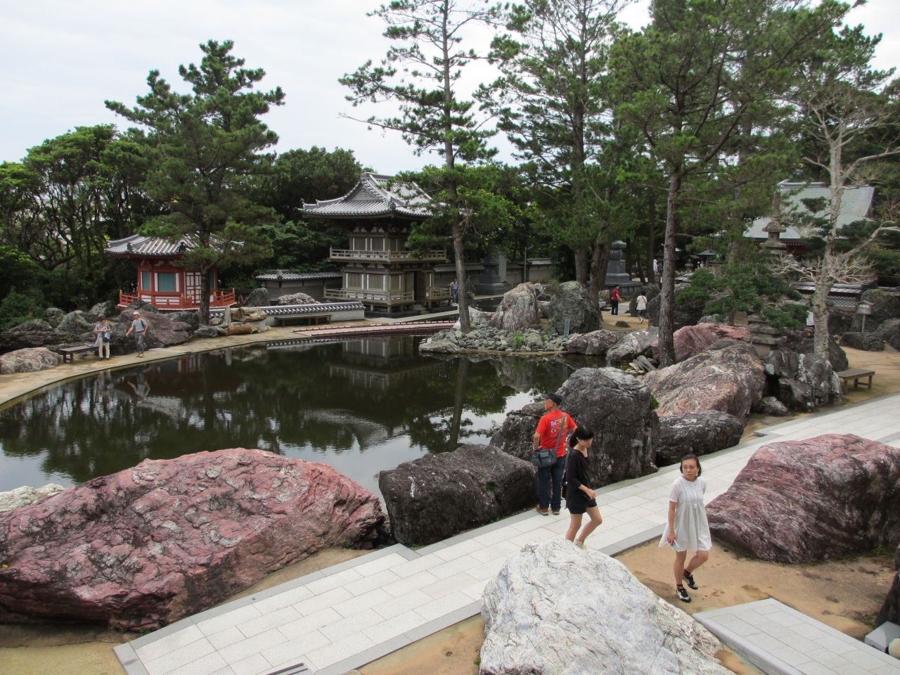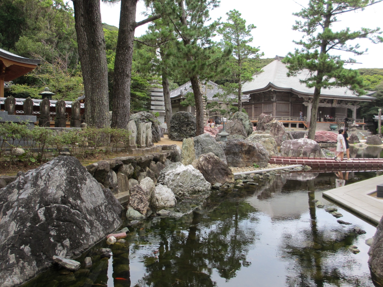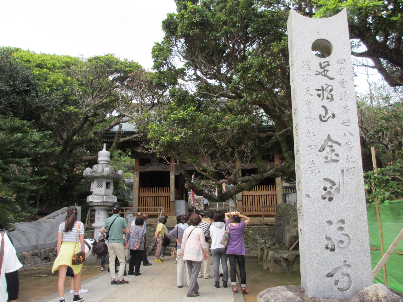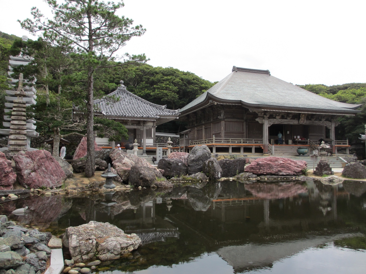 四国88霊場の38番目に当たる札所です。四国の最南端、足摺岬を見下ろすように建っています。足摺岬の駐車場の前に位置しています。境内はとても広く、池の周りには大きな石がいくつも並べられ、美しく迫力ある景観を作り出しています。本尊は千手観音です。