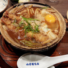 エビ天入り味噌煮込みうどん、ごはん付きでいただきました。味は間違いないです。ごはんと漬け物がおかわり自由でした。ただ、うどんにしては値段もしっかりしています。もう少しお安くなればいいのに。でも、是非また食べたいです。
