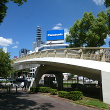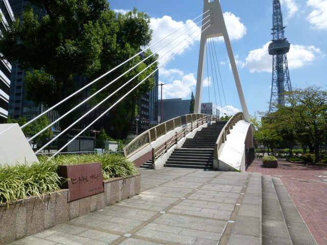 名古屋城を見学し、ここ「久屋大通公園」を散策しています。公園の幅は広く長~い公園で中には沢山の広場や公園があります。長い公園なので大きな道路との交差する場所が数ヶ所あります。その中で名古屋駅前から延びる「桜通」との交差するところに「セントラルブリッジ」はあり「桜通」を通行する車両を上から見下ろす、こととなります。ここから観る公園も良く見えいいものです。さぁー橋を渡って、テレビ塔、オアシス21まで歩いていきます。気分爽快です。