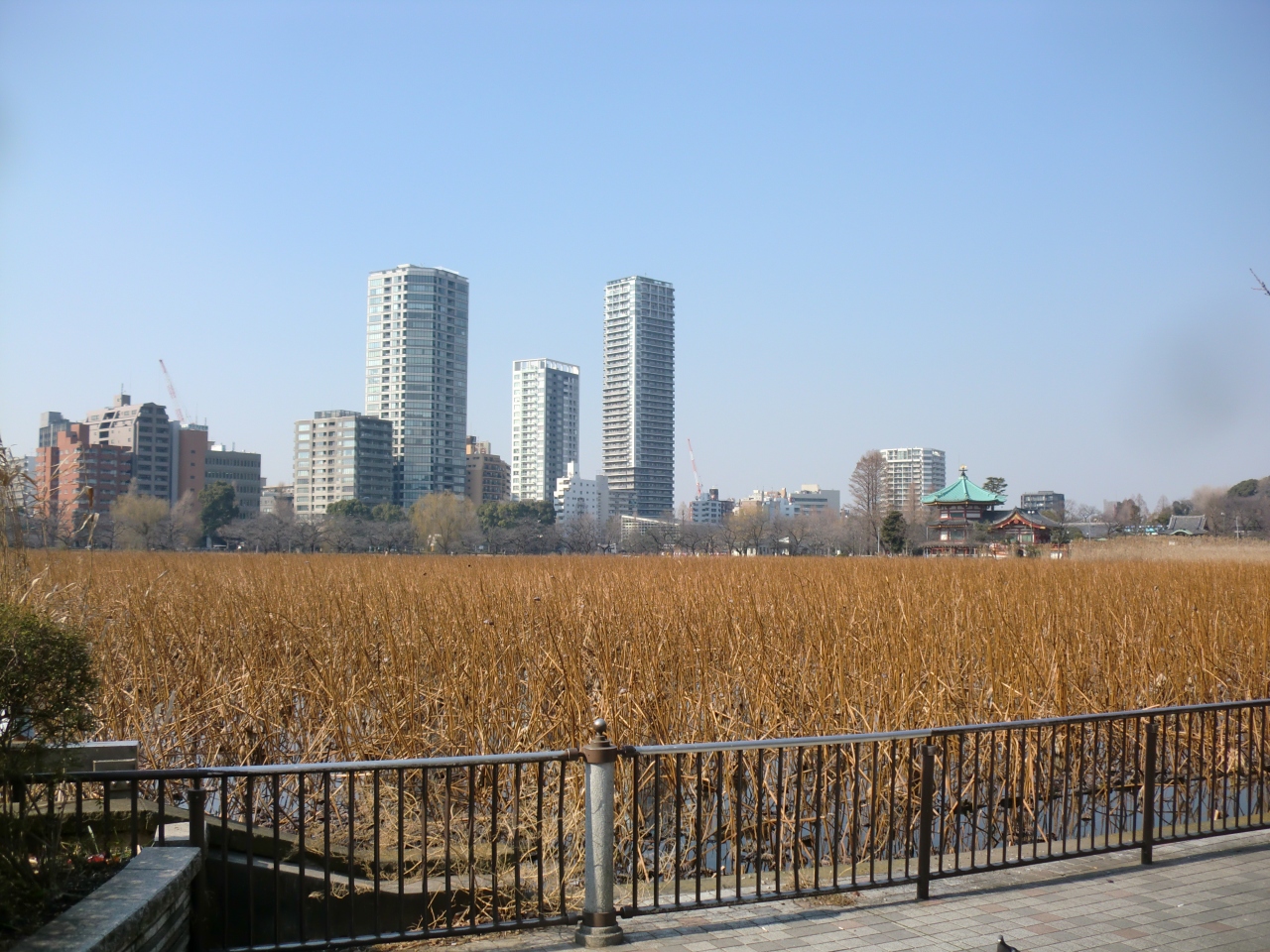 上野恩賜公園の西側に広がる、広大な池です。上野駅から京成上野駅の裏側に抜けるとたどりつきます。広いので、下町の視界が広がってほっとします。蓮の花や、葦が一面にあり、きれいな水とはいえませんが、中に弁天堂があったり、都会のオアシスです。