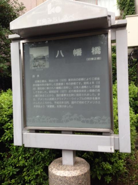 日ごろ何気なく「鉄橋」という言葉を使っていますが、思えば、鉄橋は、鉄の橋なのです。この旧弾正橋(今は八幡橋と呼ばれています)は、日本最古の鉄橋(鉄を主原料としたもの)で、国の重要文化財だそうです。この橋を起点として、日本には「鋼」を主体とした橋が生まれたのです。