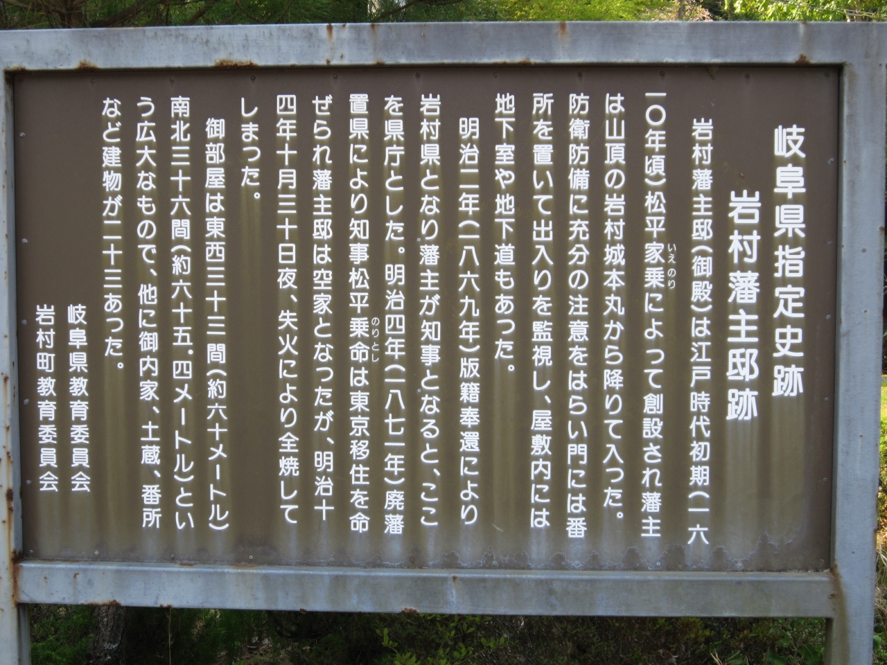 明知鉄道岩村駅から江戸風情の残る岩村の城下町を経由して徒歩30分程度。