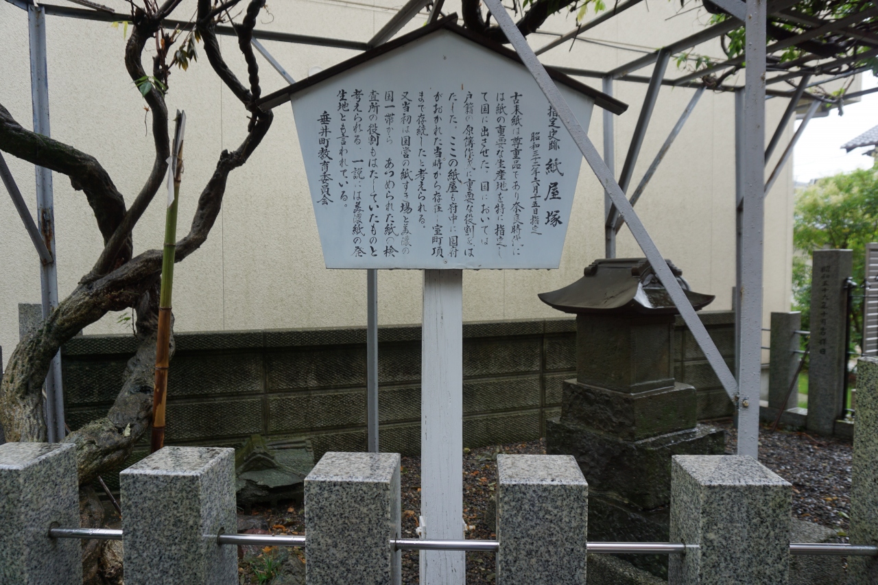 垂井は美濃の国府があったことや清らかな水が豊富だったことから、官営の抄紙場が設けられてた美濃紙の発祥の地です。塚はそれを示すものです。