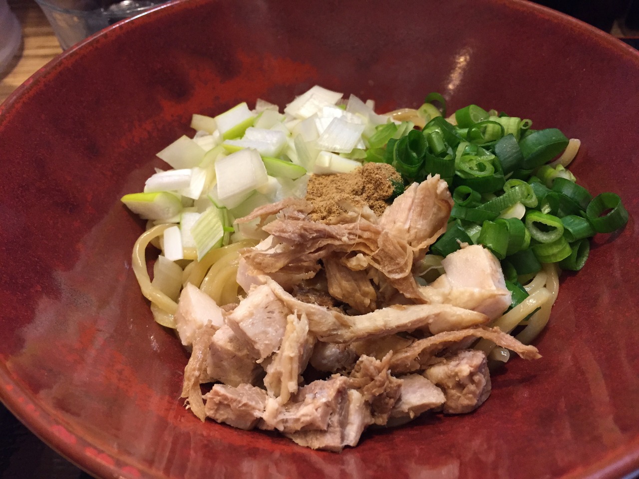 ランチパスポートで、土曜出社のときに利用。混ぜそばといういわゆるニュージャンルですね。麺の喉越しは結構好み。玉子との相性も良し。でもやっぱラーメンといえばスープ、という気分のときには少し物足りないかも。