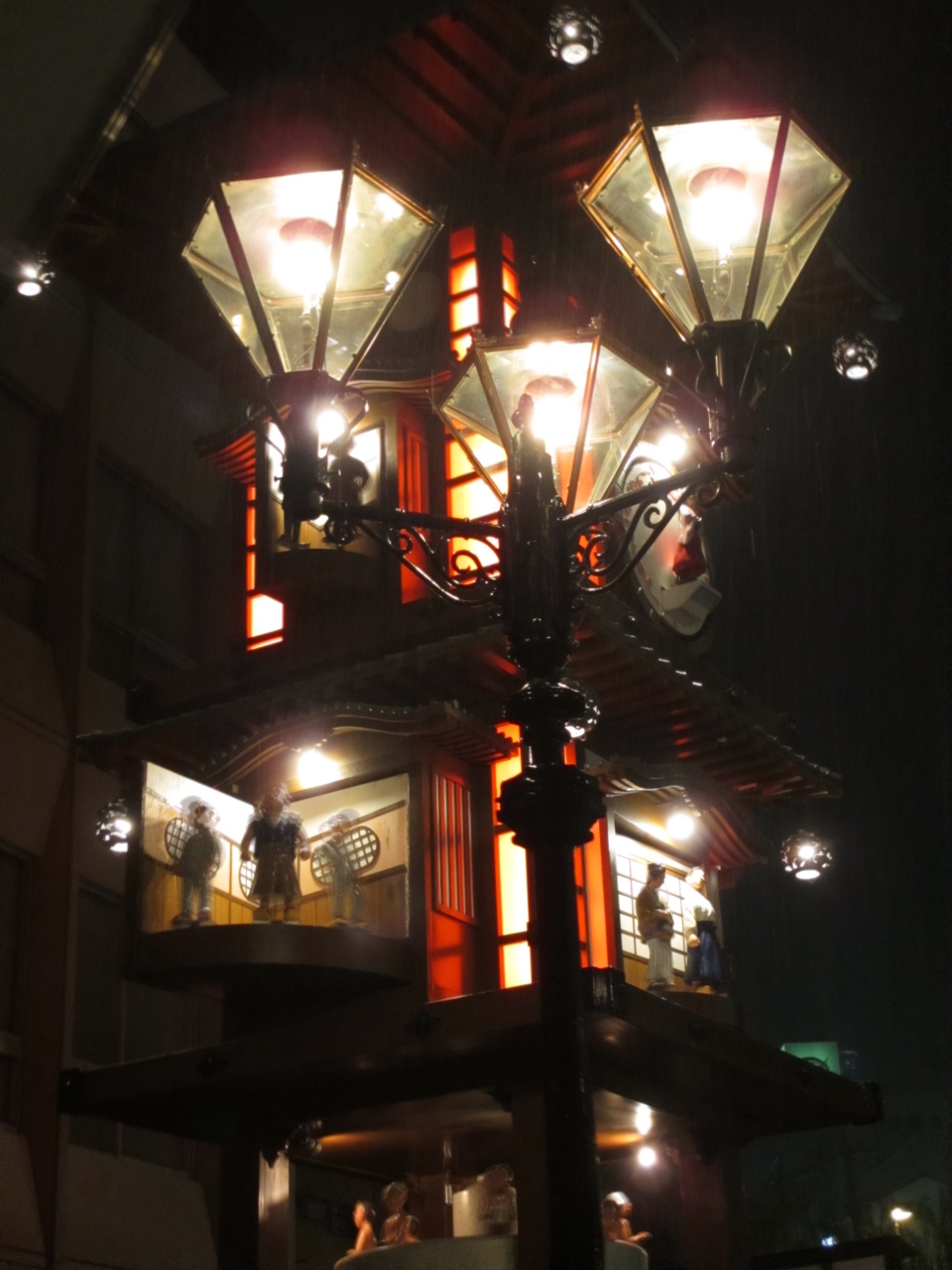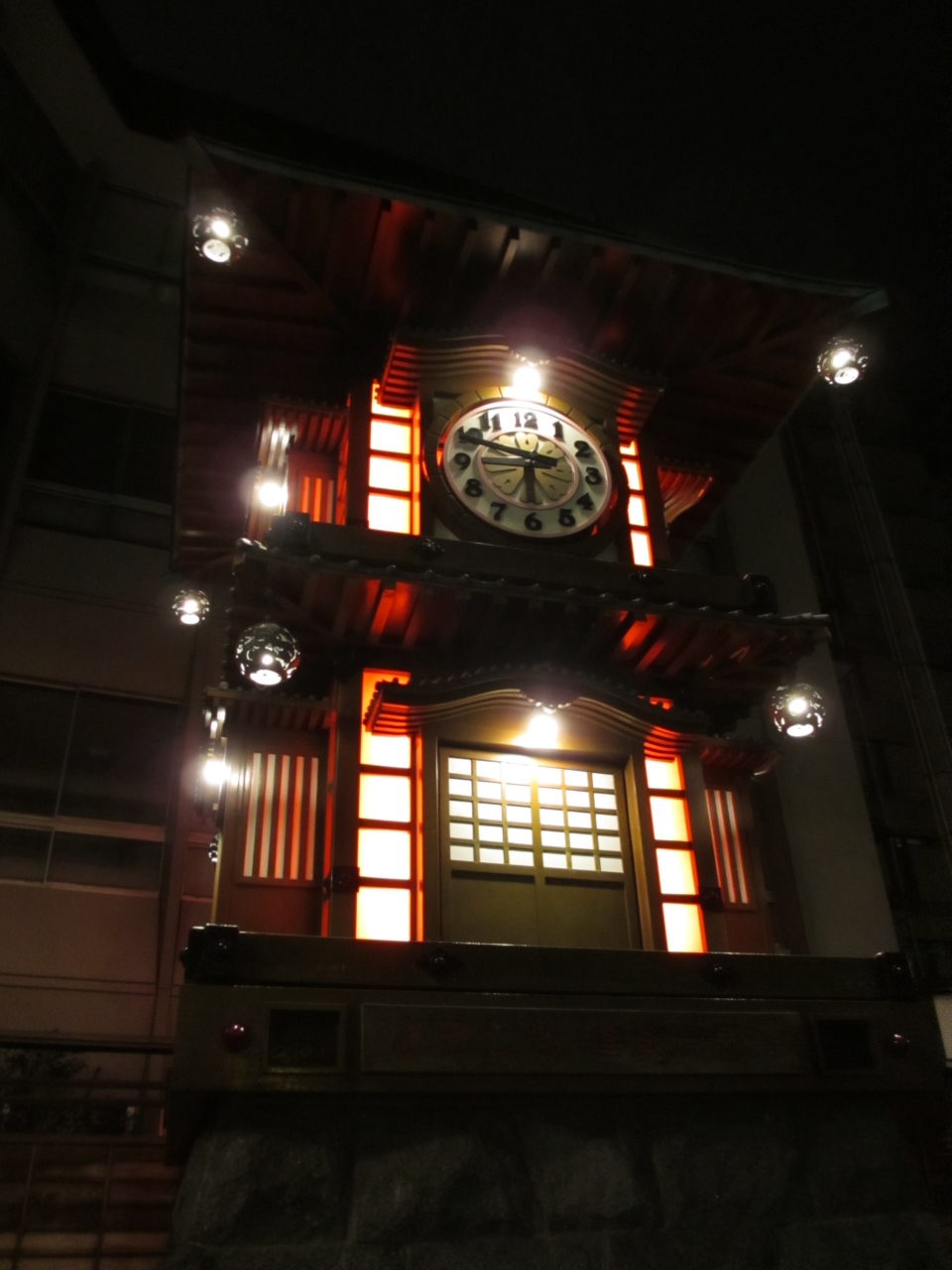 道後温泉駅前の放生園にあります。平成6年道後温泉本館百周年の記念に作られました。午前8時から午後10時まで1時間ごとに動きます。土日祝日、3月、4月、8月、11月、年末年始、GWは30分ごとに動きます。音楽と共に2段の塔が4段の塔のように持ち上がり、夏目漱石の小説坊ちゃんの登場人物が出てきて回ります。時間前になると観光客が集まります。