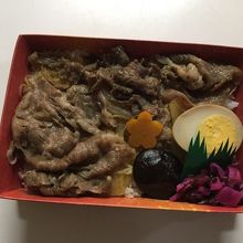 やっぱり牛めしを選択。黒毛和牛は冷めていても柔らかい。少し甘めの割り下で煮上げられた肉は、なんとも言えません。美味しいです。