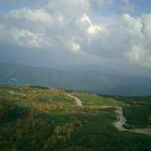 マイカーは規制されているので、麓からバスに乗り換えます。