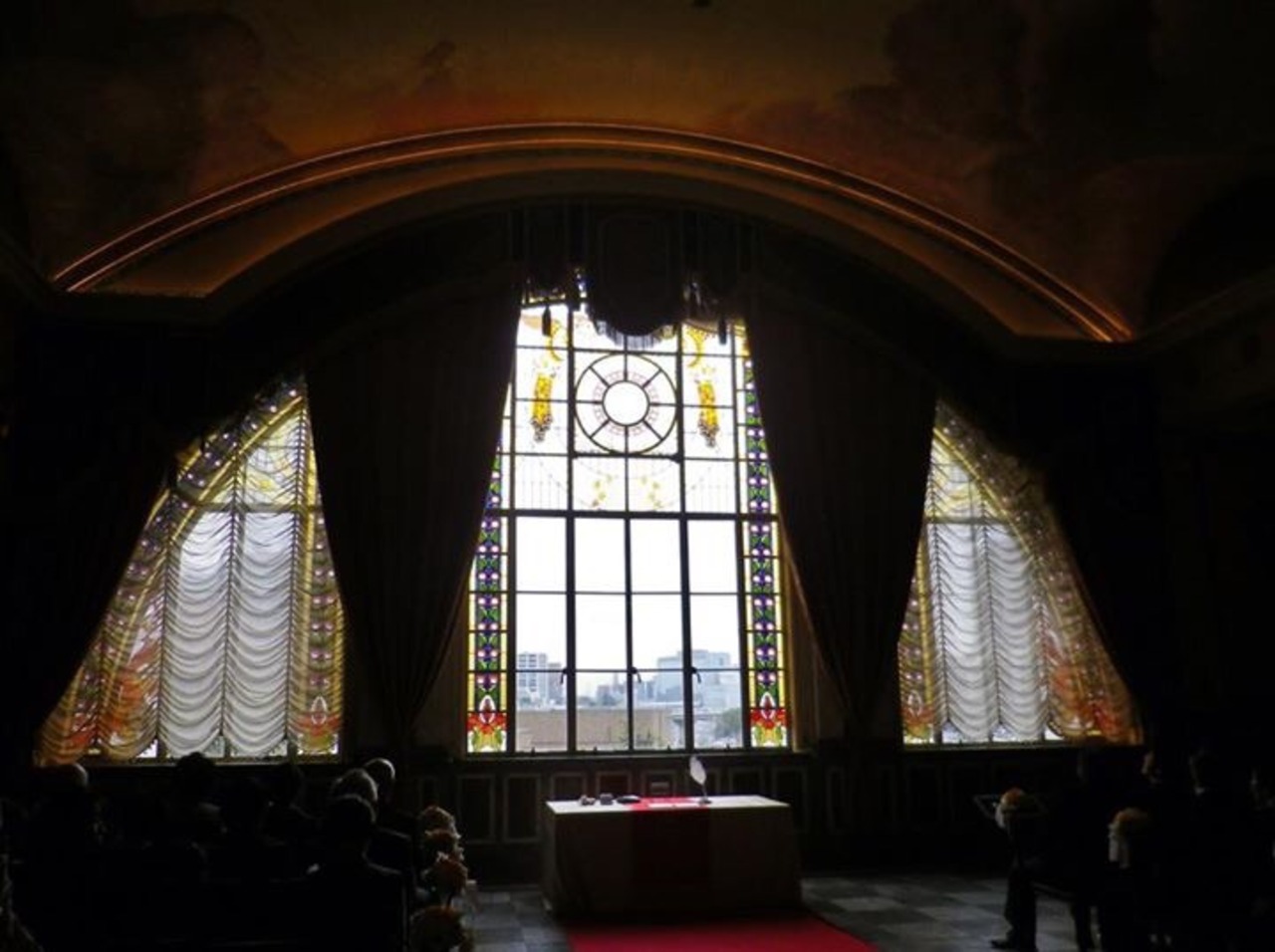 特別室で友人の結婚式がありました。以前にも何度かセミナーなどで他の部屋に行ったことはありましたが、特別室は初めてでした。壁と天井の絵が素晴らしかったです。こんな素敵なお部屋があったなんてしりませんでした。