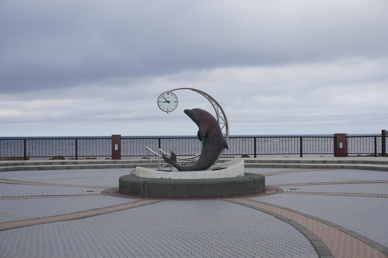 恵山泊漁港公園といってもピンとこなかったんですが、これはノシャップ岬の公園。イルカのモニュメントがシンボルです。ただ、この日はくもり空で、楽しみにしていた利尻富士の姿は見えず。対岸に自衛隊のレーダー基地が見えるので、代わりにその写真を撮るくらい。天気に恵まれないと魅力は少ない場所だと思います。