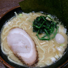 人気の家系ラーメンのお店で、店員さんの掛け声も大きくて元気。