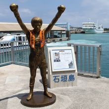 具志堅用高氏のブロンズ像が、石垣港離島ターミナルの桟橋に建っています。
